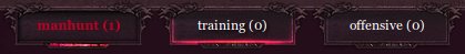 Dans la section supérieure de la zone de gestion des accomplissements on voit les sets actuellement disponibles sous forme de boutons. Le nombre derrière le nom indique combien d'accomplissements le set contient actuellement . Le bouton pour le set actuellement choisi a un halo rouge et les sets activés ont une zone rayonnante rouge en fond sous le nom